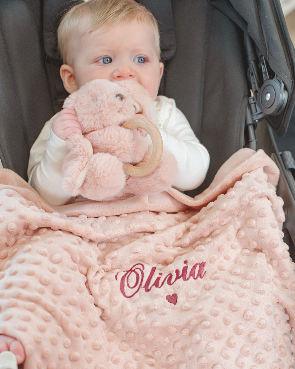 118 kr Babytæppe med navn, lyserød - Script