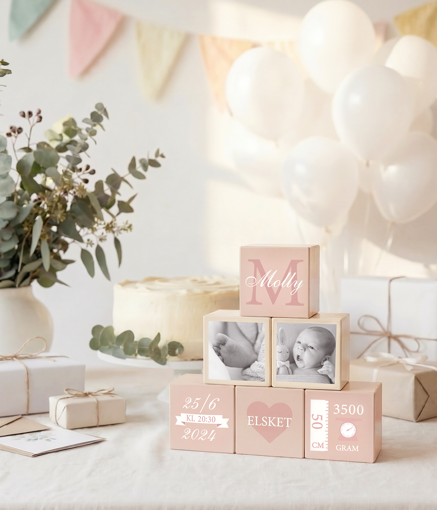 En unik dåbsgave, som legesyge træklodser mærket med barnets navn og fødselsdato, eller en praktisk opbevaringskasse med valgfrit navn, skaber en særlig følelse og bringer glæde til både store og små.
