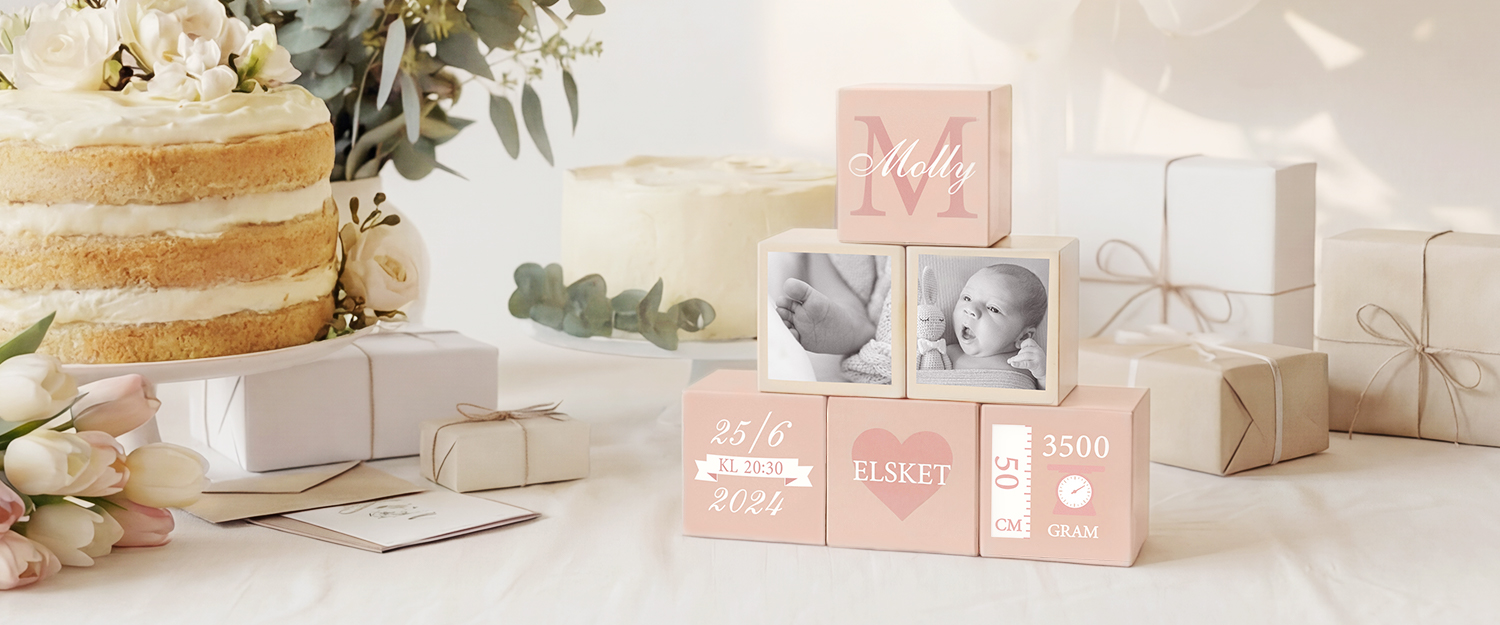 En unik dåbsgave, som legesyge træklodser mærket med barnets navn og fødselsdato, eller en praktisk opbevaringskasse med valgfrit navn, skaber en særlig følelse og bringer glæde til både store og små.