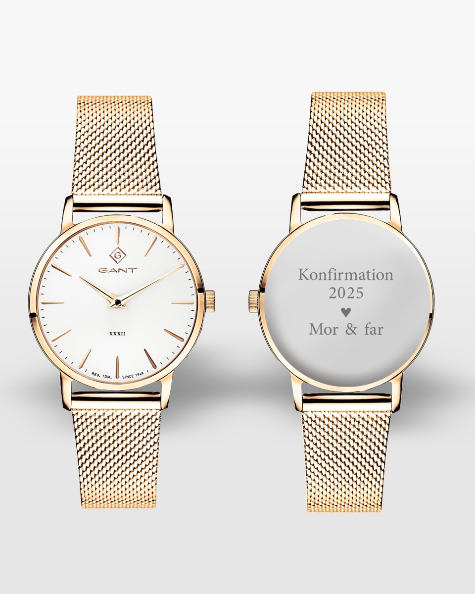 Gant ur med gravering, Park Avenue White-Gold Mesh