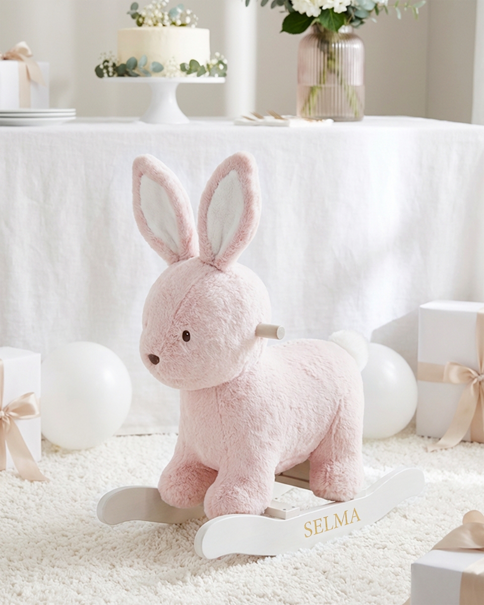 Bamse med navn, lyserød - Kanin