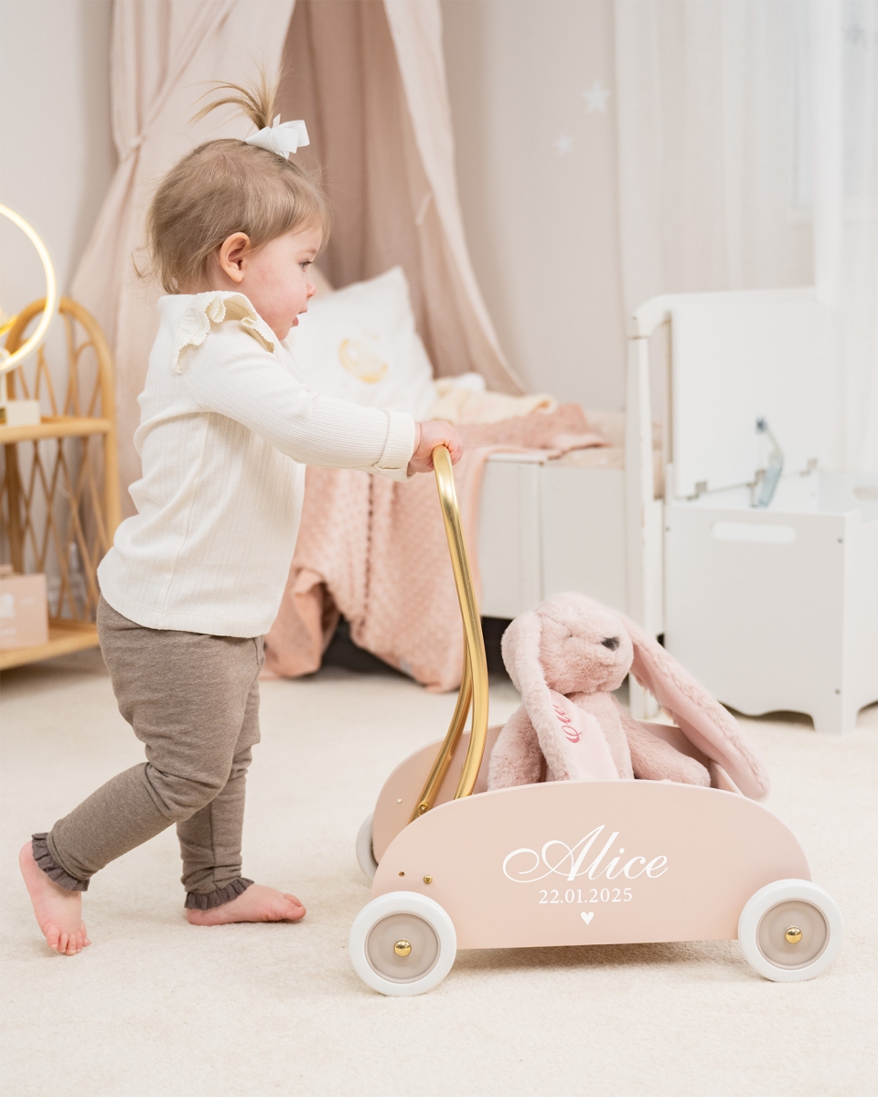 Mini gåbil med navn, lyserød - Heart