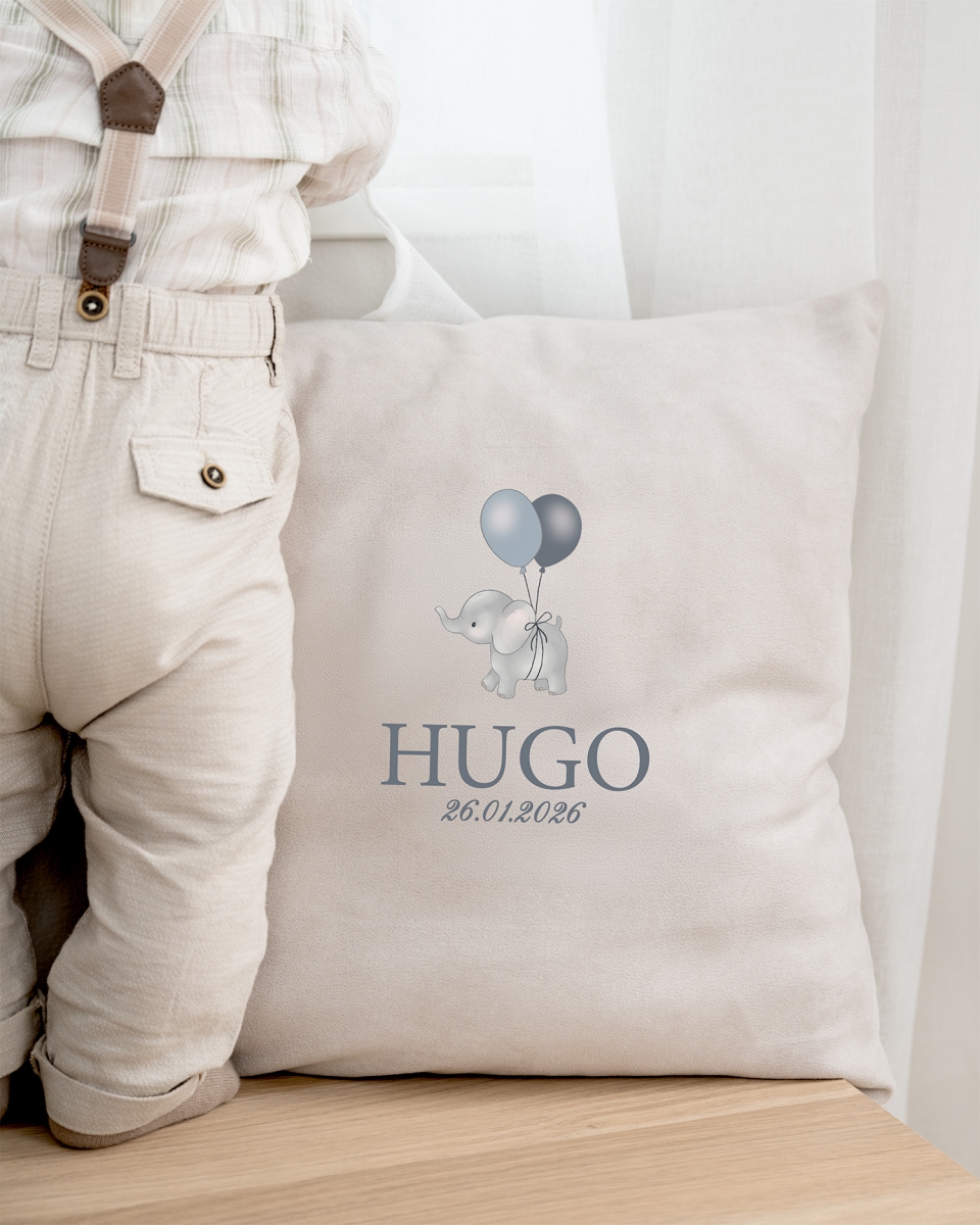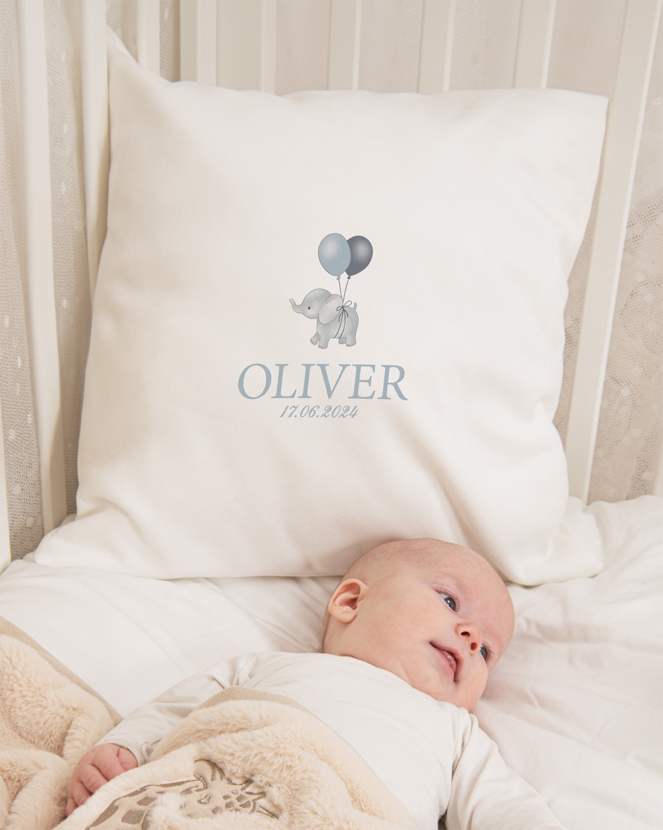 Pudebetræk med navn, dåb - Elefant