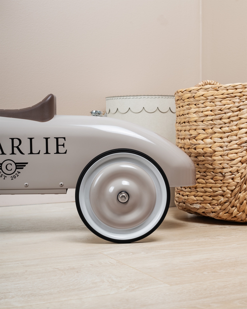 Den klassiske stil og minimalistiske design gør bilen til et smukt indslag på børneværelset, samtidig med at den indbyder til fartfyldte stunder. En legende og personlig måde at skabe barndomsminder, der varer længe.