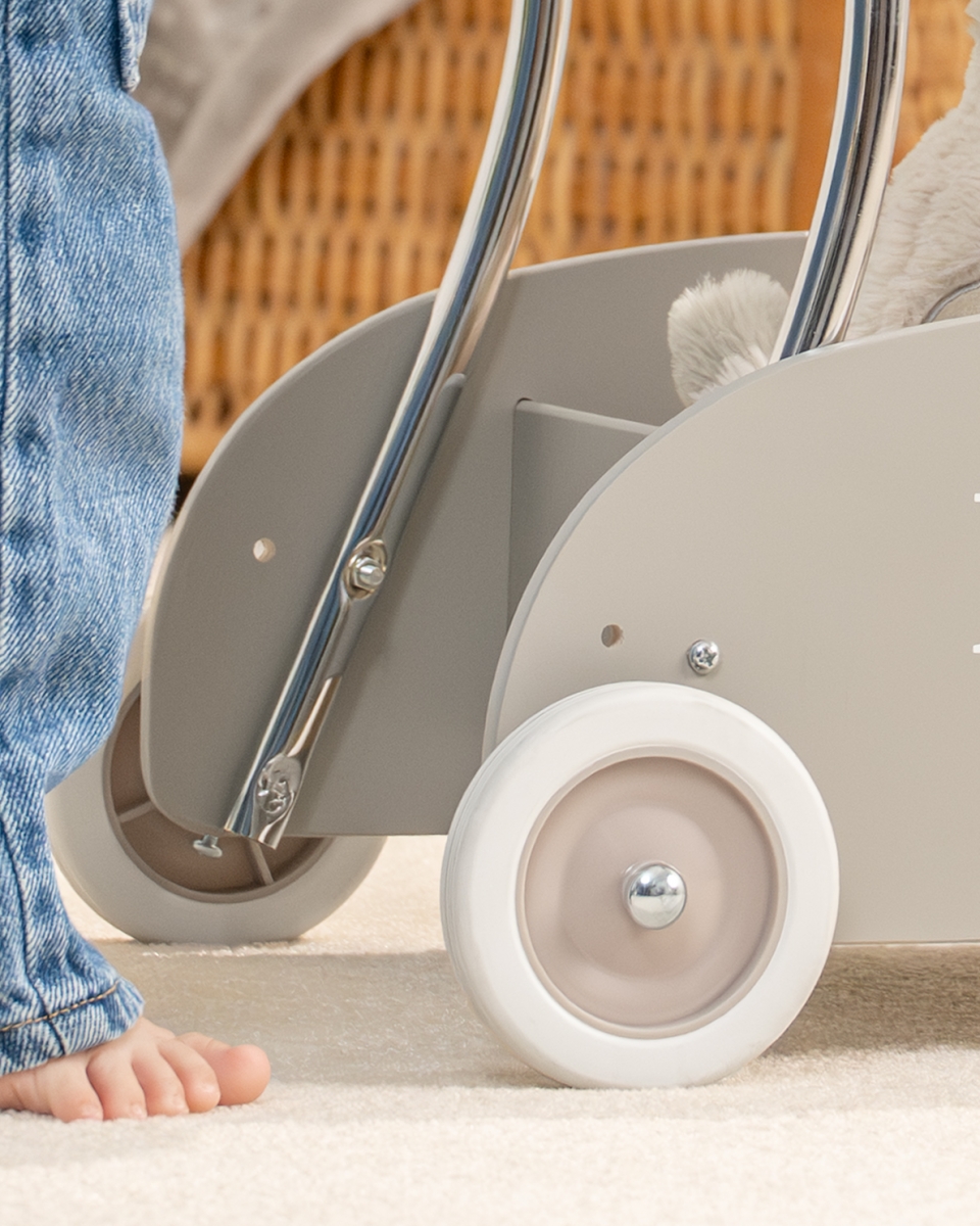 Den sandgrå farve giver et stilrent og blødt udtryk, og dens stabile design skaber tryghed, når små fødder udforsker verden. Perfekt til både leg og opdagelse, og en vidunderlig gave til dåb, navngivning eller for at fejre den første fødselsdag.