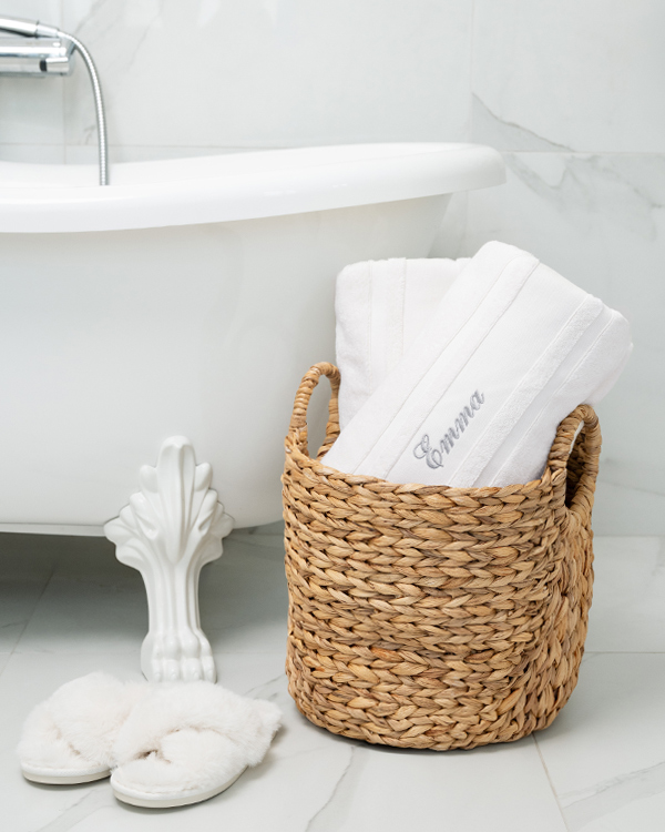I vores sortiment af håndklæder med navn kan du vælge mellem flere forskellige farver, størrelser og designmuligheder, så du finder præcis det, der passer til dit hjem. Vores håndklæder fås i flere elegante nuancer og med forskellige skrifttyper – vælg mellem klassiske, kursiverede eller mere moderne broderede initialer. Her finder du den perfekte balance mellem luksus og personlig stil – ideelt både til dig selv og som en særlig gave til en, du holder af.
